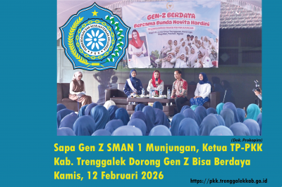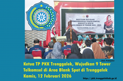 Selamat datang di portal informasi TP PKK Kabupaten Trenggalek, website ini merupakan media informasi publikasi dan komunikasi TP PKK Kabupaten Trenggalek dalam menyampaikan informasi kegiatan dan dalam upaya mendukung tercapainya program kerja Pemerintah guna pemberdayaan dan peningkatan kesejahteraan keluarga masyarakat Kabupaten Trenggalek.
